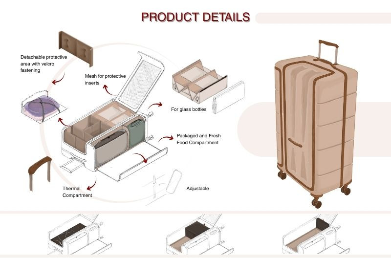 The project developed within the IND301 Studio is a suitcase designed by considering the needs expatriates face during their travel processes. It provides secure protection against the breakage and spillage of belongings and food, and offers a practical and organized user experience through versatile carrying options and a well-organized interior.