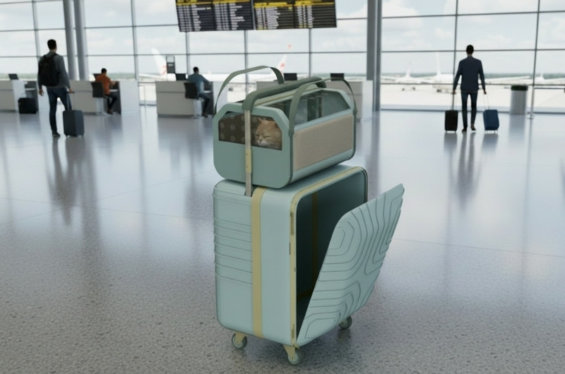 Bu proje, seyahat deneyimini evcil hayvan odağında yeniden kurgular. Modüler yapısıyla hayvan eşyaları için geniş alan sunan valiz ve çanta kombinasyonu; havadar kanallar, kişinin hayvanıyla görsel ve fiziksel temas kurabildiği şeffaf tavan ve hayvanın kaostan gizlenmesını sağlayan kapalı yan ve arka yüzeyiyle, güvenliği ve kişisel seyahat hikayesini birleştiren bir yaşam alanı sunar.