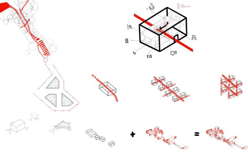 Beyond Shelter: Cohousing is not merely about living together; it is about a community united around a shared purpose, working collectively and sustaining a harmonious way of life. In this vision, Moda Pier transforms into a vibrant urban laboratory where living, production, and movement converge. Stretching along the coastline, the red line unites life, food, and community into a single spatial and social backbone, establishing a new ecological order. More than a simple path, this line plays a vital role in the life of Moda Pier, defining boundaries, shaping living spaces, and embodying the principles of collective and communal life.